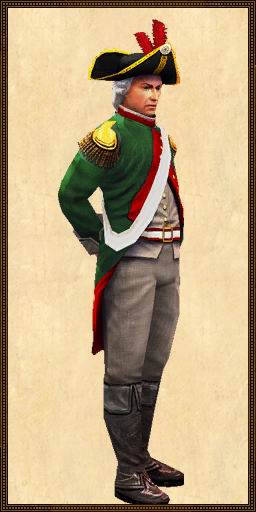 库协尔上校用刺刀攻击敌人。他的生命值很高,但在战斗中倒下后,必须自行恢复足够的生命值才能让盟友救援。华盛顿将军可以收集宝藏,但无法建造交易站。