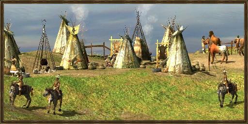 新世界的原住民,当您和他们结盟后,他们便会与您分享战士和技术。若要和 美洲原住民结盟,必须在他们的部落附近建造交易站。美洲原住民战士不会占用任 何人口数。
